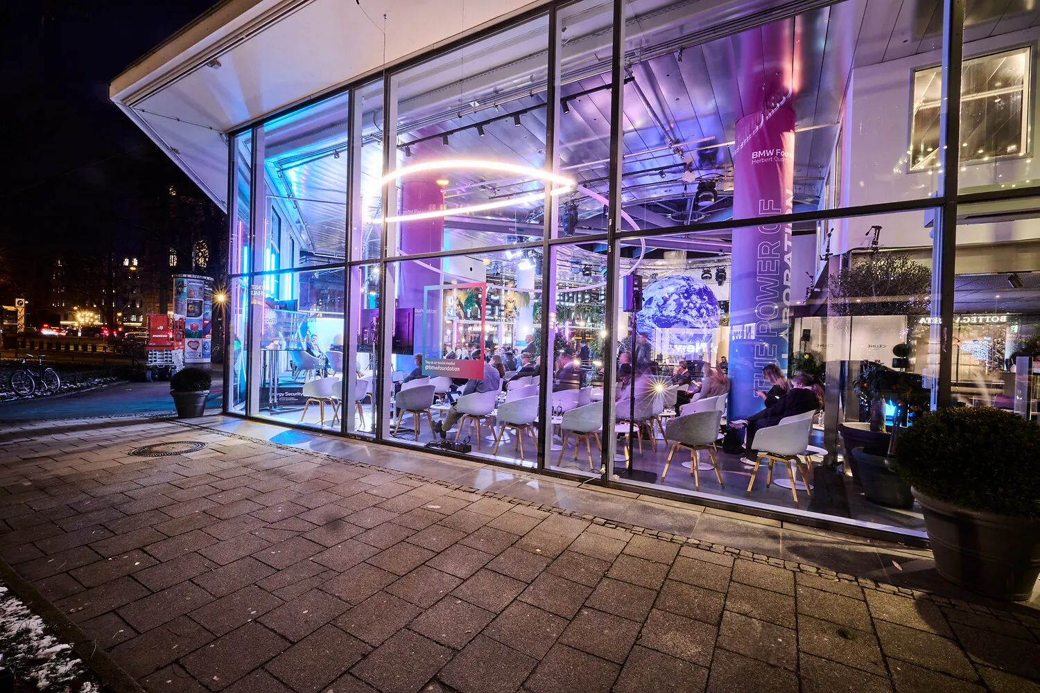 Hohe Decken · Glas & Stahl · Licht- & Sound-Setup · Automotive-Flair